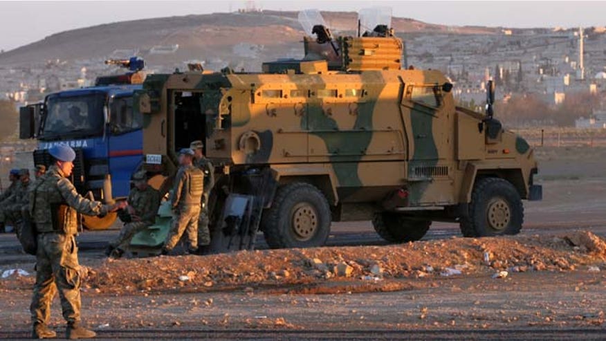 09.23-ний өдрөөс хойш АНУ Арабын холбоотны улстай хамтран Сири дэх лалын хэт даврагчид руу агаараас цохилт хийснээс хойш Турк улсын хилийн ойролцоо Сири дахь террорист бүлгийнхэн үйл ажиллагаагаа улам идвэхижүүлж хүчээ зузаатгаж эхэлсэн ч Турк улс нь Исламын улс бүлгийн эсрэг цэргийн хүч оруулахын эсрэг байр суурьтай байсан юм. Учир нь тус улсын иргэд террорист бүлгийн барьцаанд хоригдож байсан бөгөөд тэдний аюулгүй байдлыг хангахын тулд ийнхүү шийдэж байжээ.