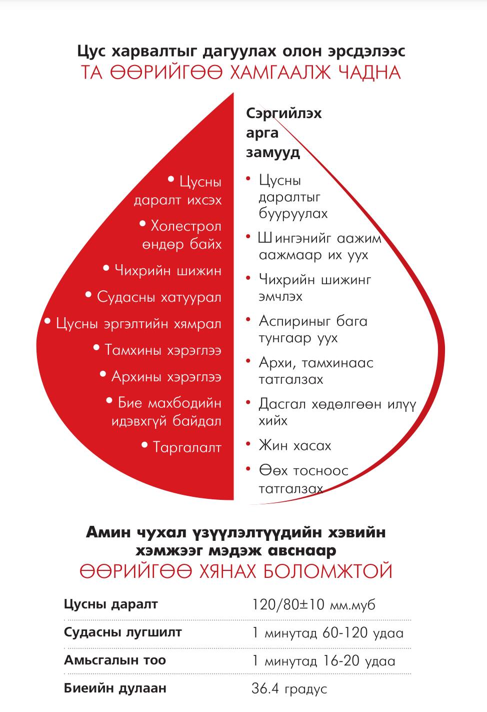 Зөвхөн амьдралын зөв хэвшил л энэ өвчнөөс биднийг хамгаалж чадна. Цусны даралтаа тогтмол хянах. чихрийн шижин, тамхи татах, таргалалт, жирэмслэлтийн эсрэг бэлдмэлүүд, буруу хооллолт, хөдөлгөөний дутагдал, халдварууд, архидалт, газарзүйн байрлал, цаг агаарын нөхцөл байдлууд нь энэ өвчин үүсэх шалтгаан болдог учраас энэ бүгдэд өртөхгүй байх хэрэгтэй.