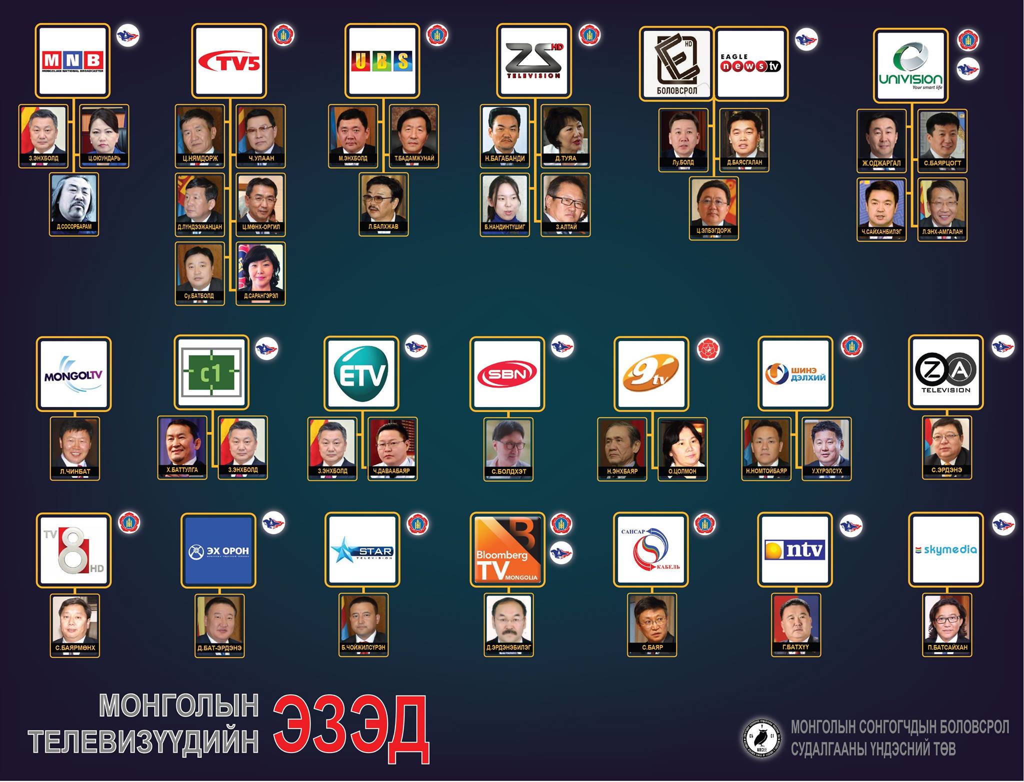 Сонгогчдын Боловсрол Судалгааны Үндэсний Төвөөс /СБСҮТ/ Монголын телевизүүдийн цаад эздийн тухай маш сонирхолтой инфографик хийжээ.