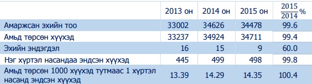 Улаанбаатар хотын статистикийн газраас энэ оны 10-р сарын мэдээг гаргажээ. Оны эхний 10 сард 34711 хүүхэд мэндэлсэн нь өмнөх оны мөн үеэс 213 хүүхдээр цөөн байна. Нийт төрсөн хүүхдийн 12.8 хувь буюу 4426 нь бусад аймгийн харъяат эхчүүдээс төрсөн байна. Энэ хугацаанд эхийн эндэгдэл 9, нэг хүртэлх насандаа эндсэн хүүхэд 498 тохиолджээ.