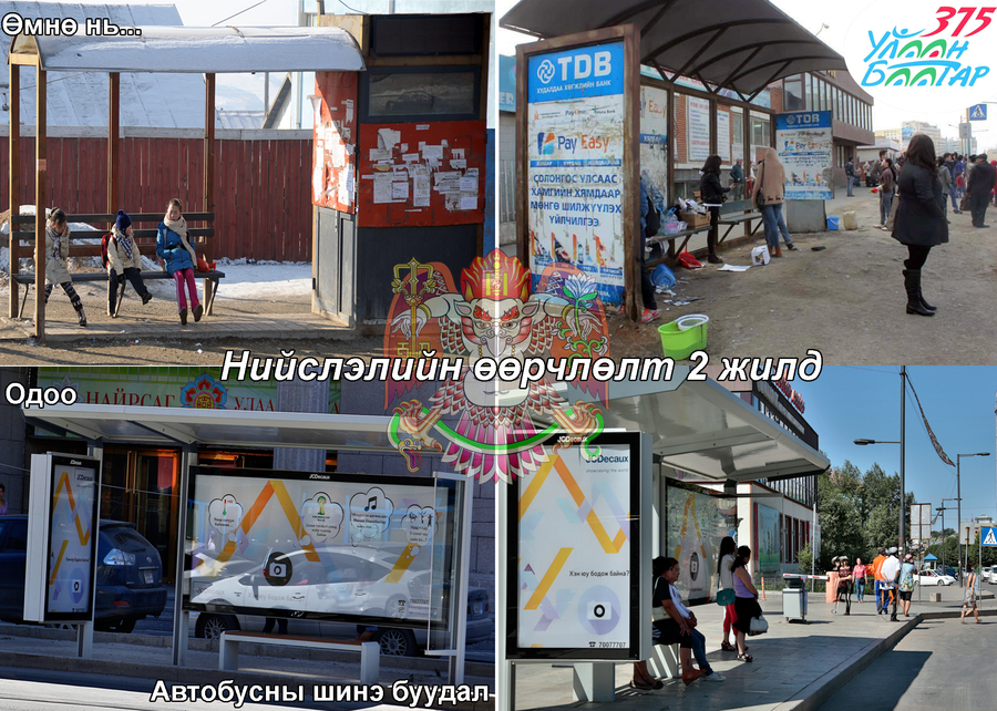 Улаанбаатар хотын Захирагчийн ажлын албанаас Худалдаа хөгжлийн банкны санхүүжилтээр “Жи Си Деко Монгол” ХХК-тай хамтран хотын төвийн автобусны буудлуудыг бүрэн шинэчилллээ. Ингэснээр автобусны буудлууд байнгын арчилгаатай болж байгаа төдийгүй, иргэд автобус хүлээж зогсох зуураа эхний 20 минут үнэгүй интернэт ашиглах боломжтой болов. Өнөөдрийн байдлаар нийслэлийн хэмжээнд 114 автобусны буудлыг иж бүрэн шинэчлээд байгаа бөгөөд нийт 250 буудлыг яг ийм маягаар шинэчлэх юм. Мөн хөгжлийн бэрхшээлтэй иргэдэд зориулсан дуу, авиа, дохио сурах шинэлэг төхөөрөмжийг суурилуулж байгаа бөгөөд тохиргооны ажлуудыг хийж эхлээд байна гэж Нийслэлийн ЗДТГ-ын Хэвллэл мэдээлэл, олон нийттэй харилцах хэлтсээс мэдээллээ.