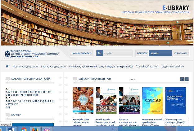 ХЭҮК дээр Хүний эрхийн цахим номын сангийн нээлт боллоо. Нээлтийн ажиллагаанд ХЭҮК-ын гишүүн Н.Ганбаяр, ХЭҮК-ын ажлын албаны дарга А.Дашдэлэг, ХЭҮК-ын Бодлогын дүн шинжилгээ, хүний эрхийн боловсролын хэлтсийн дарга Г.Агар-Эрдэнэ, БСШУЯ-ны Соёлын өвийн хэлтсийн дарга С.Урантөгс, Шүүхийн ерөнхий зөвлөлийн дэргэдэх Шүүхийн судалгаа, мэдээлэл, сургалтын хүрээлэнгийн захирал, доктор Ц.Мандах болон Монголын Үндэсний номын сан, Улаанбаатар хотын төв номын сан, Хүүхдийн номын ордон, МУИС-ийн номын сан, ХСИС-ийн номын сан, Үндэсний тагнуулын академи, Удирдлагын академи, зэрэг 16 байгууллагын номын сангийн удирдлагууд оролцлоо.